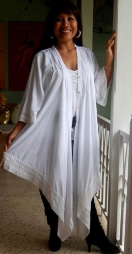 The Detailed Description of WHITE TOP BLOUSE JACKET LACE ASYM - FITS (ONE SIZE) - L XL 1X 2X - J733S LOTUSTRADERSFeatures