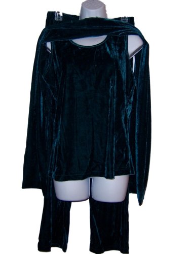 The Detailed Description of Susan Graver Stretch Velvet Tank, Pants and Scarf (Dark Green, Small 6 8)Features