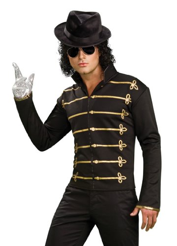 - This Michael Jackson costume includes an adult size black military jacket with gold trim.