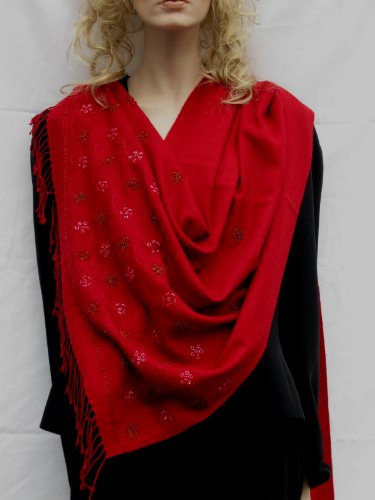 - Beaded Pashmina shawls are the most elegant accessory for evening wear or special occasions and until today they are the most used fashionable items. These shawls described the richness of the people. Beaded Pashmina shawls are uniquely finished with hand-tied tassels, marvelous embroidery work and beautiful fringes. Our beaded Pashmina shawls are available in wide range and in diverse colors. Since we strive for the best, therefore we use the finest Czechoslovakian beads for beading and embroidery. Our high quality and luxurious beaded Pashmina wraps can complement to any outfit and can fit any lifestyle. Beaded shawl make a casual outfit, looking wonderful and sensational and give any outfit a new fashionable look. You can drape the wrap over your shoulders for comfort and warmth or fold to make a spectacular muffler. Some of our wraps are also complimented with beads on the tassels or fringes.