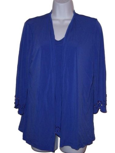 The Detailed Description of Citiknits Stretch Jersey Cardigan and Camisole with Scalloped Edges and Beading (Medium 10 12, Lapis Blue)Features