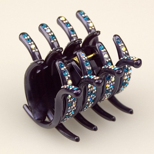 Having a hair emergency and need cure to keep your hair up... and stat? If so, call dibs on this uniquely styled glossy-blue rib clip. Almost 175 diamond and emerald-clear Swarovski Crystals are scattered up and down the alternating ribs of this sparkling design. Many more tiny silvery studs are scattered throughout to capture and reflect even more light.