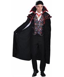 This lord of the castle has a taste for blood! Baron von Blood plus size vampire costume includes a cape and a shirt with attached vest. Plus Size mens costume fits up to a chest size 48.Pants and wig are not included.