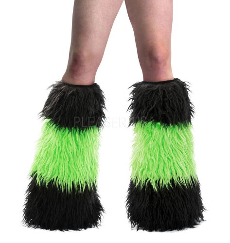 Yeti-03 UV Reactive Stripe Furry Boot Covers - Neon Green THIS ITEM INCLUDES 1 Pair of furry leg warmers Shoes sold separately