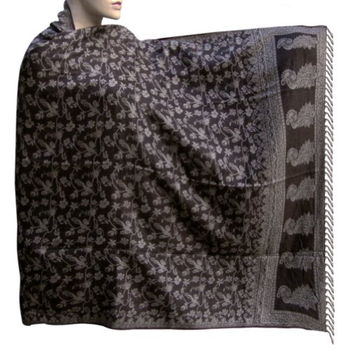 Kashmir embroidered shawl has unique charm. Floral patterns in multi color are embroidered on solid color wool fabric. They are known for their softness and warmth. Pashmina is an Urdu and Persian word which only became popular after the so-named shawls, woven in Kashmir, started being popular in the west.