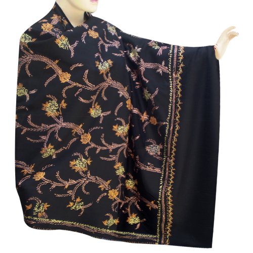 Kashmir embroidered shawl has unique charm. Floral patterns in multi color are embroidered on solid color wool fabric. They are known for their softness and warmth. Pashmina is an Urdu and Persian word which only became popular after the so-named shawls, woven in Kashmir, started being popular in the west.