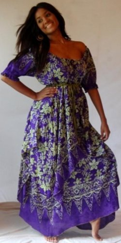 The Detailed Description of PURPLE DRESS PEASANT RENAISSANCE EMPIRE BATIK - FITS (ONE SIZE) - M L 1X 2X - Z881S LOTUSTRADERSFeatures