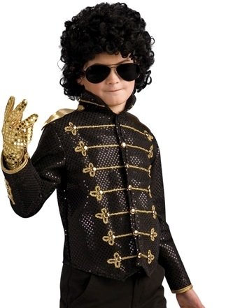 - This kids Michael Jackson costume includes one deluxe black Michael Jackson military jacket.