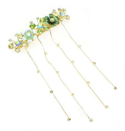 The Detailed Description of Green Floral Attack Hair Barrette with DanglesFeatures